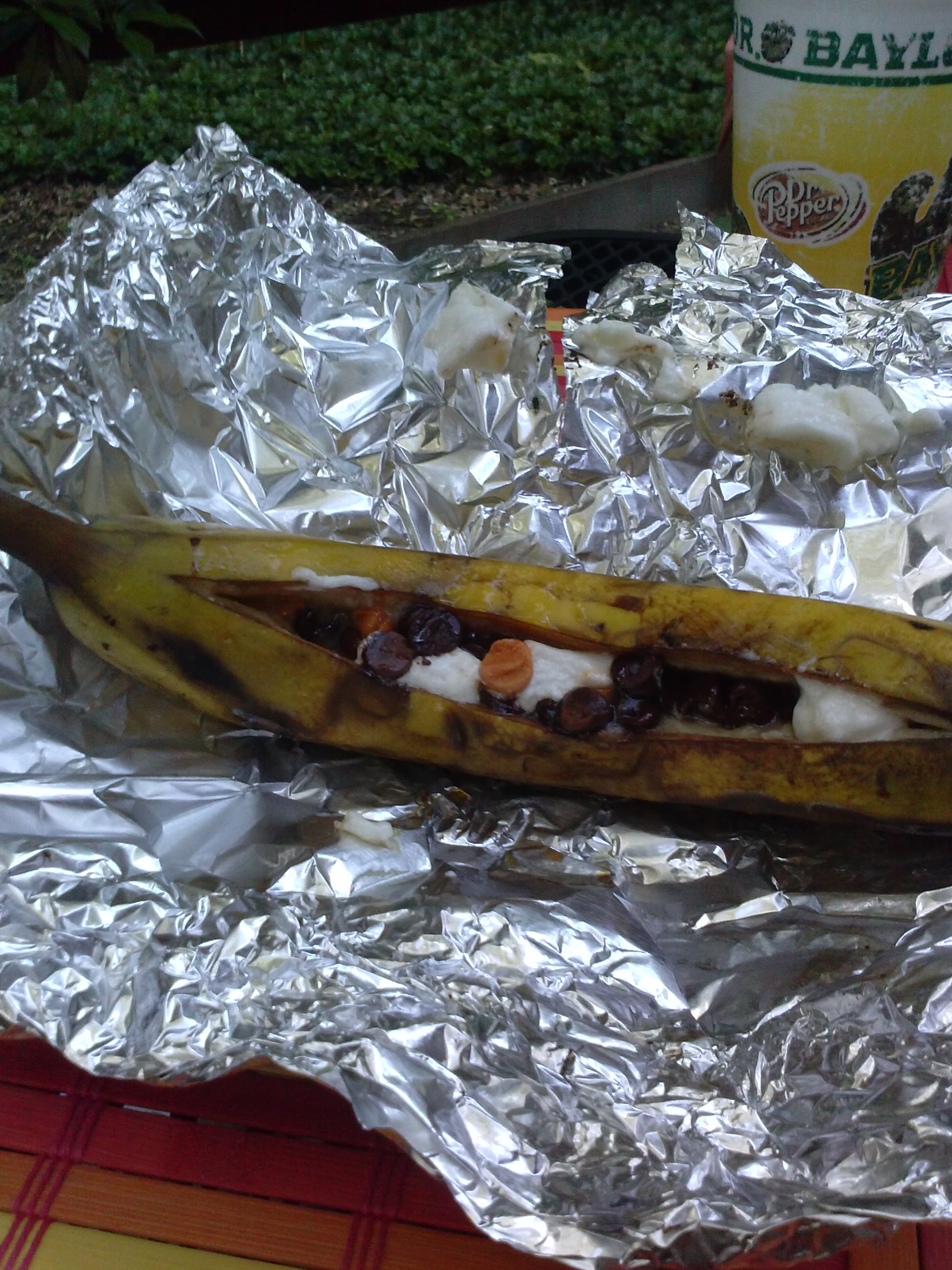 On Sunday, for our Father’s Day cookout, I decided to make banana boats on the grill. I did a quick search online for ideas and found many. For our banana boats, I used chocolate chips, butterscotch chips and marshmallows. I didn’t have any mini marshmallows on hand so I cut up a regular-sized marshmallow and it worked fine. However, next time I would lightly spray the foil with cooking spray so that chocolate chips and marshmallows don’t stick to the foil if they fall out of the banana.